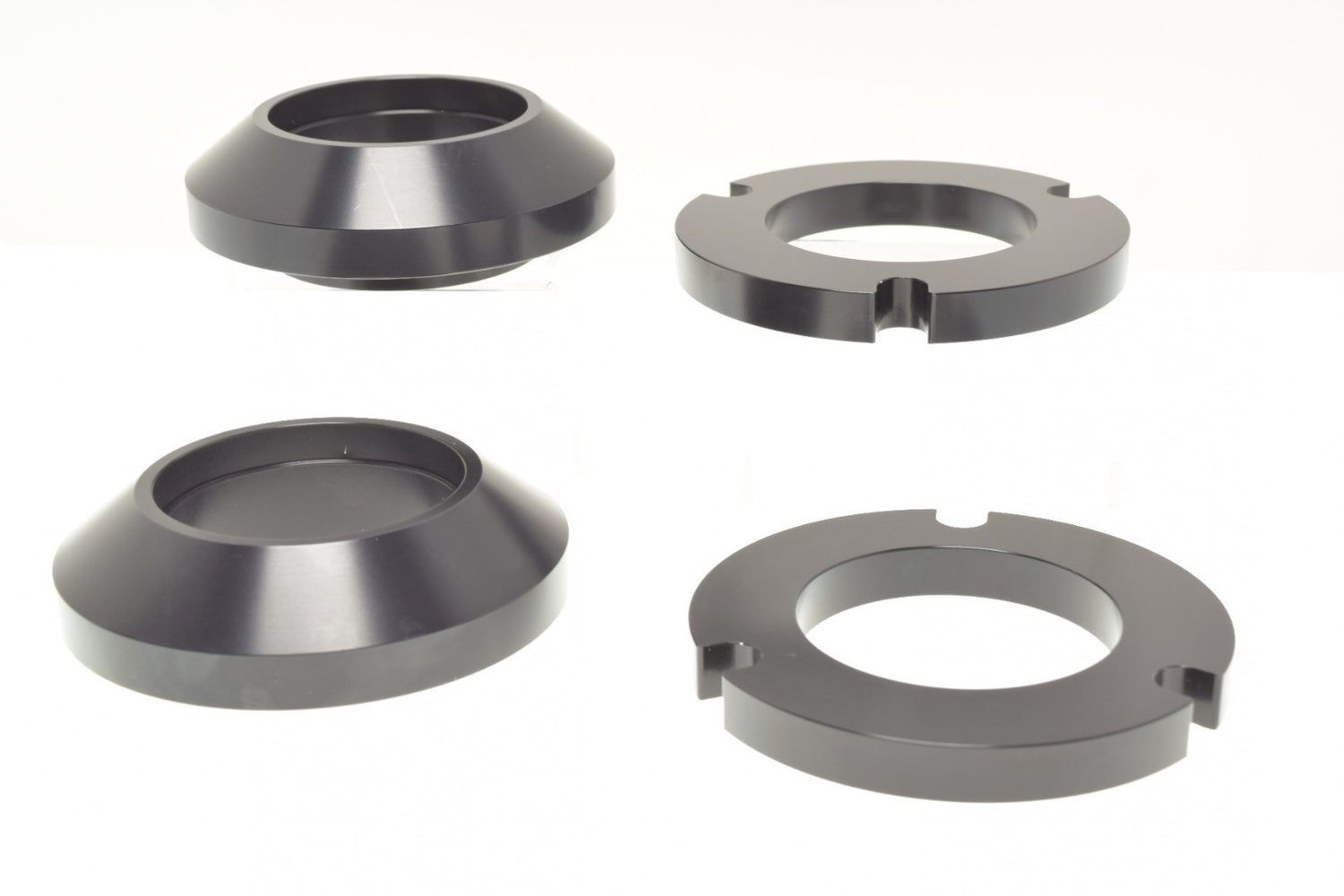Westcott Designs Front Only preload collar lift kit for the all-new 2022 Toyota Tundra! This kit features CNC machined lower preload collars, top shim plates and hard anodized black for a strong, durable finish. This kit gives you a full 3” of front lift using your factory shocks and springs and includes complete hardware for an easy install. This is NOT your traditional spacer lift kit, you retain your factory ride quality, factory suspension geometry and still able to align the vehicle to factory specs after install. It does NOT require new UCA’s, and you can run up to a 35” tire without a Body Mount Chop (37” tires are compatible if used with the correct wheel size & offset with minor trimming) *Not AVS compatible – currently in development