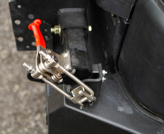 The Metal Tech Red Eye II features a new one piece main shell now with and auto locking open and closed swing arm. The latch system is now stainless steel and features the bolt on serviceable lading pad for the latch featuring two UHMW CNC machined plastic ware pads for no squeaks and long service. The main shell of this FJ Cruiser rear swing out bumper has cut outs for optional flange mount LED back up lights.