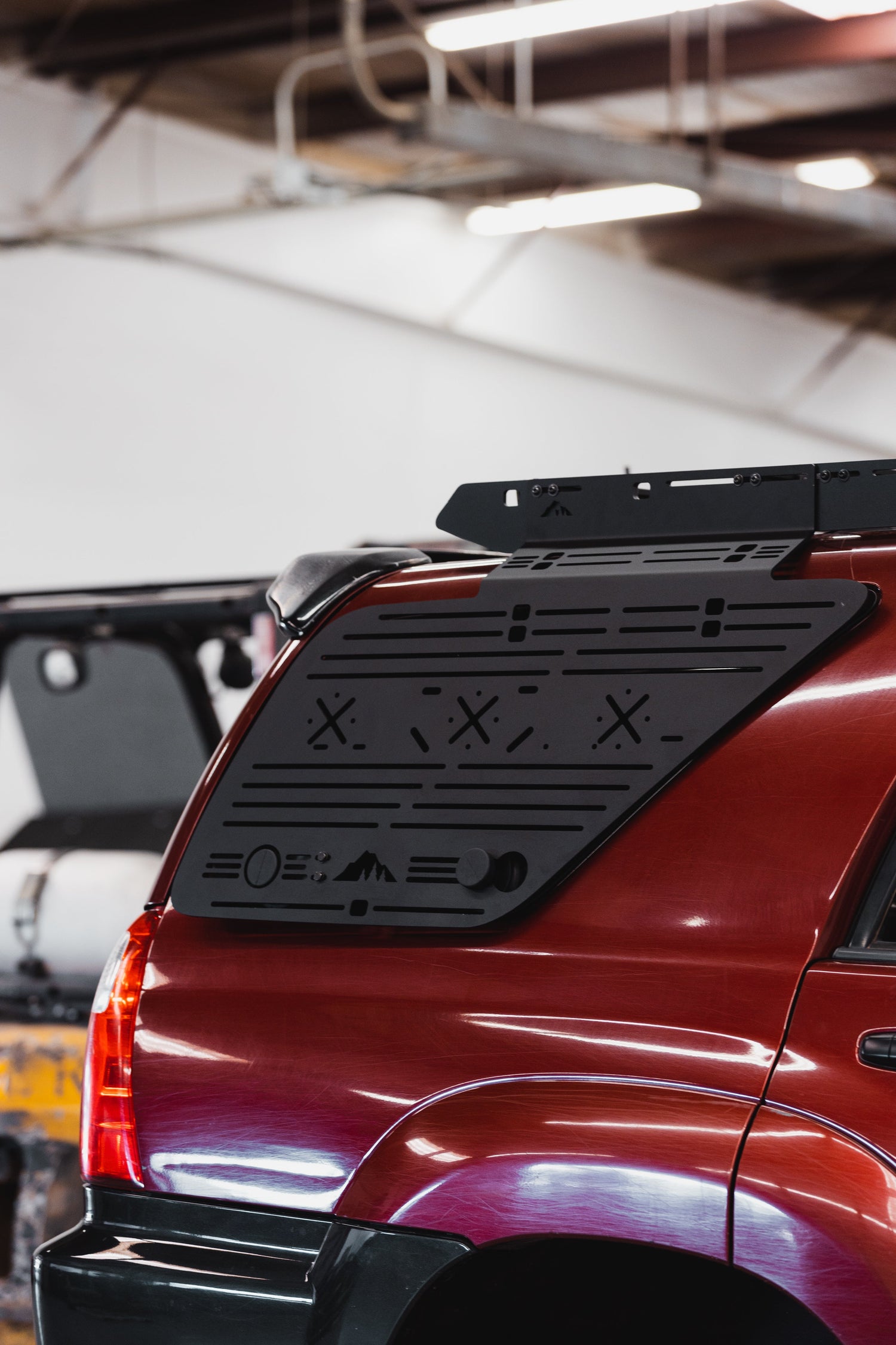 A new way to mount your essential gear for easy access and more storage on your 4th Gen 4Runner. Made out of 3/16 aluminum, this lightweight yet strong panel allows you to add convenient mounting options to the side of your vehicle. Perfect to mount your recovery gear, fuel, water, shovel, axe, first aid kit, or nearly anything that can be bolted or strapped down. Compatible with most standard awnings using Sherpa Awning Mounts. Designed to match the window shape of your 4Runner, this bolts to your Princeton rack at the top and suctions to the window at the bottom. No drilling or other modifications are necessary.