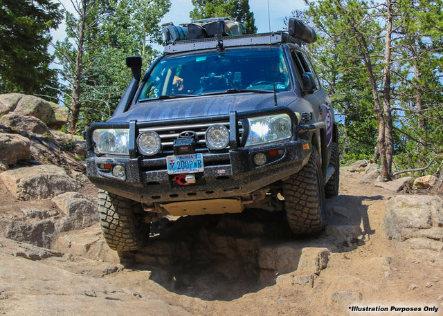 Manufactured from high quality structural steel, Dobinsons bull bars are CNC cut, bent and welded for accurate fitment, optimum strength and durability. Features vary by bumper model, but may include: Airbag and winch compatible, Driving light mounts, turn signal (Deluxe and Stainless bumpers only) and parking lights, Heavy duty black powder-coat finish, Dual re-enforced hi-lift jacking points, Dual aerial mounts, Polyurethane bumper overiders (deluxe and Stainless bumpers only), Re-enforced bull-bar wing tips, Separate winch cradle to chassis mounting system allows excess weight and load to be supported directly by the chassis, 3mm Thick Main Body, 4mm + 5mm Thick Bracket, 1.6mm Bash Plates (some models may not come with these), 51mm Upper loops on Classic Black and Classic Black Deluxe (60mm Land Cruiser 200 Series), 76mm center loop and 51mm side loops on Stainless Loop Deluxe models. All bumpers are supplied with a black finish. Stainless Loop Deluxe Bull Bars are supplied with a black finish and stainless steel loops. Some photos show painted bumpers on show vehicles for photography purposes. Color matching can be performed by your local automotive spray painter. Due to the additional weight when fitting a Bull Bar and/or Winch, the vehicle€™s ride height will be lowered. We suggest replacing the springs with a matched pair of springs to suit the requirement. Most bull bars are also equipped with center and side protection plates for the underside of the bull bar. A crucial feature to help protect vital vehicle components when off-road driving. Separate winch cradle to chassis mounting system allows the additional weight of the winch and winching load to be supported directly by the chassis. NOTE: Contact us for accurate information on bumper specifics before ordering if you have questions. Returned shipments will incur additional shipping and handling charges.