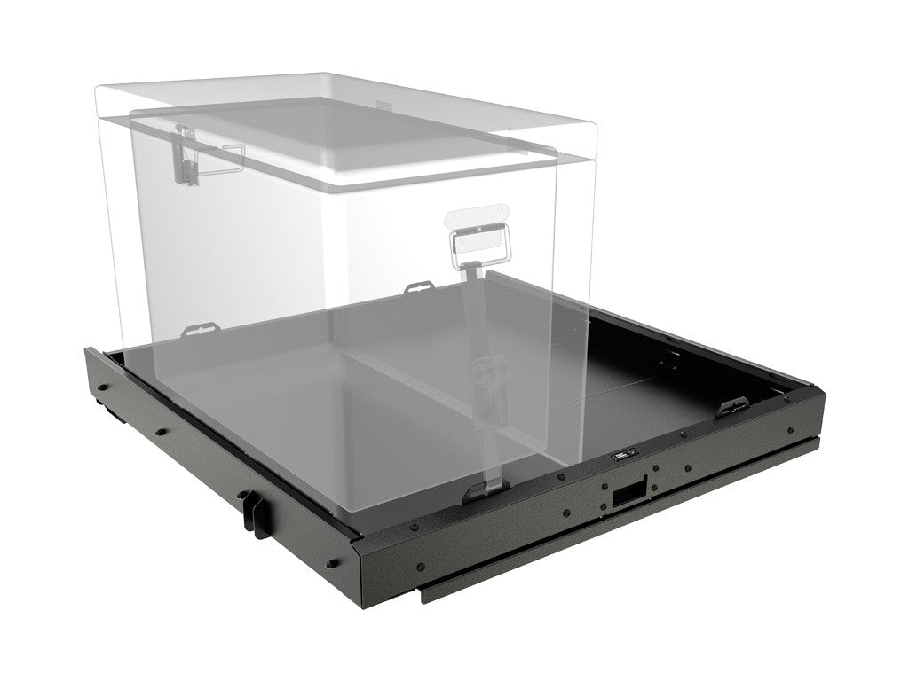 This “flat drawer” can hold a refrigerator along with chairs, cargo boxes, and other gear. Or it can simply be used to easily access groceries and other everyday items.Secure up to a 52L (or equivalent) size fridge, with additional room for storage -- such as the Front Runner Wolf Packs or Cub Boxes, tents, chairs, camp kitchen items, tool kits, etc. Mounts to the existing tie down points in the bed of the JKU and does NOT REQUIRE DRILLING into your 2011 + Jeep Wrangler JKU. “Push to close” dual latching lock securely keeps the unit closed and rattle-free. Works with the factory Sub Woofer in place. When extended, 100% full access to the storage cubby. Features multiple tie down points for Stratchits or many other style straps. Load Rating: 113 kg / 250 lbs. Finished with the same durable black powder coating as Front Runner Roof Racks and other Front Runner products. The Front Runner JK Cargo Slide is the perfect companion to the VACC021. If you own a 2007 - 2010 JKU, installation of this product requires drilling 2 9mm holes into the body of your vehicle. See Installation Instructions for more details. This product was not designed for 2-Door JK models.All Front Runner Storage Systems are backed by a 2 year warranty. Note: Fridges or other storage containers are not included when purchasing this Cargo Slide and are sold separately.