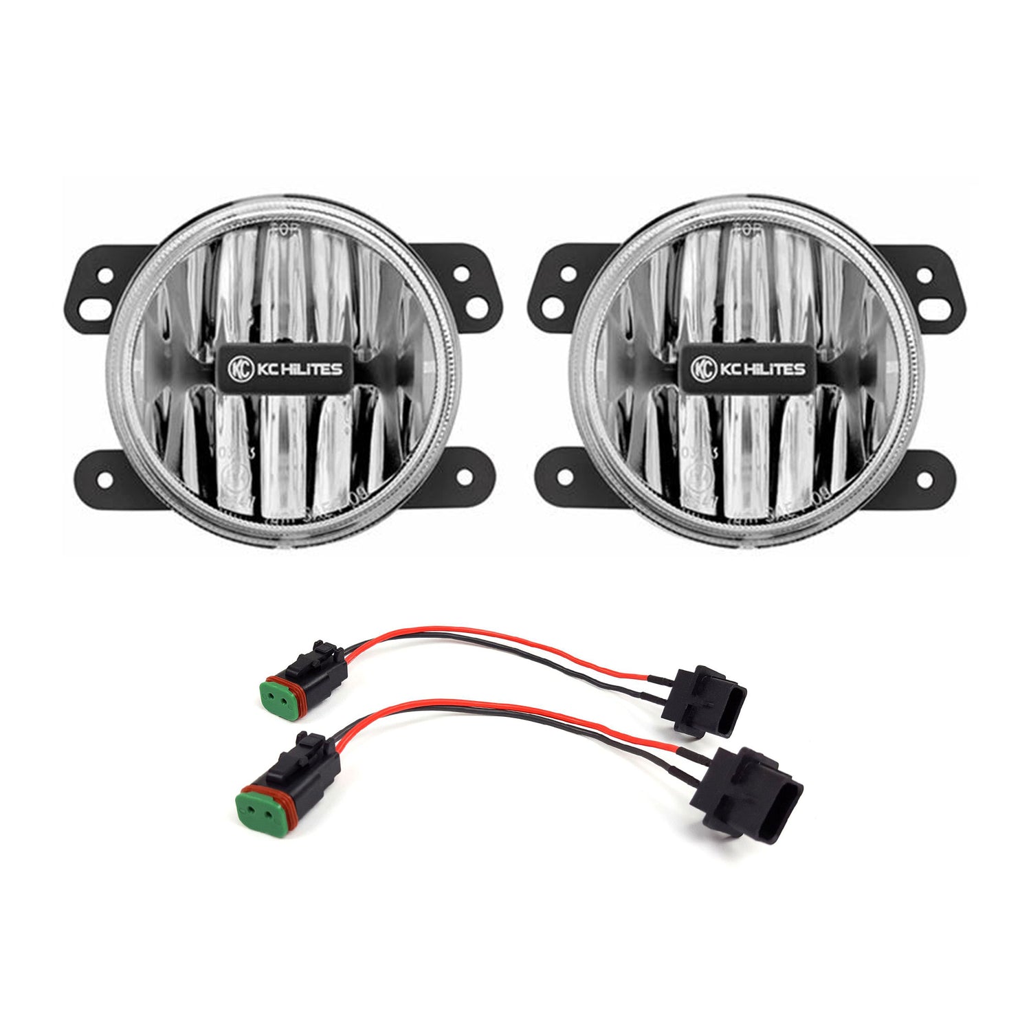KC Hilites 4 in Gravity LED G4 - 2-Light Roof Rack - SAE/ECE - 10W Fog Beam - Jeep JL / JT Stock Bumper