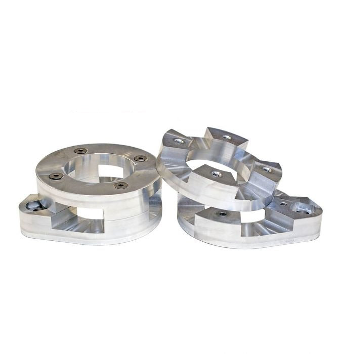 The name Jeep is synonymous with rugged outdoor adventure.  Few vehicles give the owner the feeling that they can go anywhere they want when behind the wheel of the world's original SUV.  Whether your adventures lead to the beach, mountains or any other activities that begin with getting behind the wheel of that new Jeep Wrangler JK, ReadyLIFT has a Jeep JK lift system that will make you look good getting there as well as increasing fenderwell clearance for those necessary off road wheels and tires.  Lets face it, a Jeep just doesn't look DONE unless it has aggressive off-road terrain tires.  ReadyLIFT's 66-6095 2007-2018 Jeep JK suspension products deliver several lift options.  Our new 3-in-1 adjustable height coil spring lift spacers allows you to select the height of front end lift that you want.  Machined from 6061-T6 billet Aluminum and featuring a Patent Pending unique design, you choose adjustments from 1", 1.5" or 2" inches of lift to get the look you want.  This is the perfect kit for Jeep owners who have installed a front winch or heavy front bumper by helping to bring the front end back up to where it belongs.  The ReadyLIFT 66-6095 Jeep Wrangler JK adjustable lift spacers (US Patent 7665743) allow for the installation of up to 33" tall tires and are guaranteed to Maintain Your Factory Ride! The kit comes with machined spacers for the front suspension along with all necessary hardware and instructions.