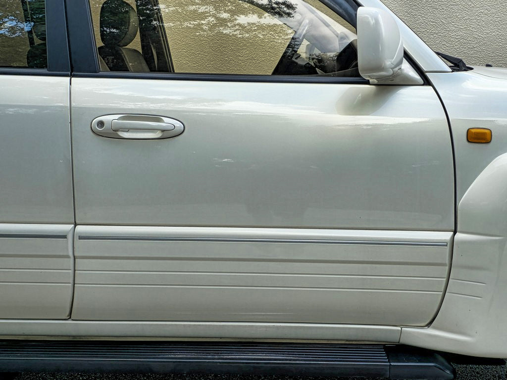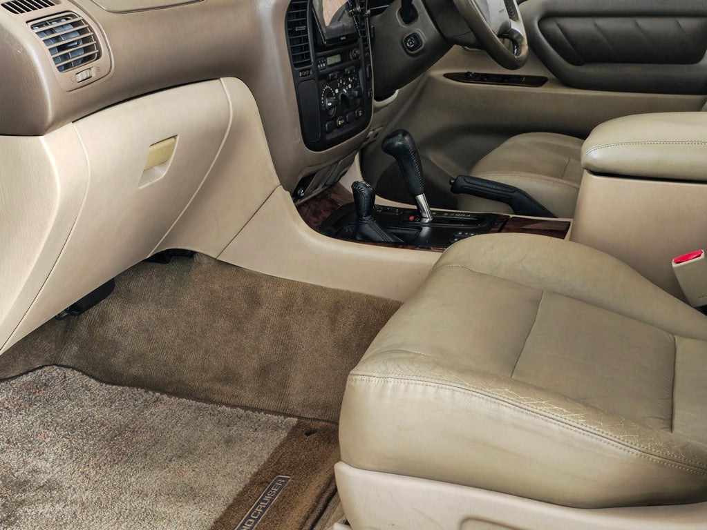 Zero rust and low mile 1998 Toyota Land Cruiser, finished in White Pearl over Tan leather. This Land Cruiser is a right-hand drive, Japanese-market SUV currently titled in Florida. With only 71,335 miles and an excellent service history including full service just performed 6/20/24 and the timing belt, water pump were completed at 101,000km. Aftermarket parts that came with this Cruiser are the wide body arctic style fender flares and a body lift! Factory equipment includes Leather, a locking center differential, Power Sunroof, Rear Spoiler, automatic climate control, power windows and door locks, and more as listed below. Toyota launched the 100-Series Land Cruiser for 1998 as a replacement for the 80-Series model. While the design changes were largely evolutionary, the 100 was the first Land Cruiser available with a V8 engine and it gained an independent front suspension system for the first time. Changes to the steering system were made as well. All told, it offered a smoother ride, more power, and a more luxurious cabin than its predecessor but it remained just as capable off the beaten path. Production ended in 2007. Power comes from a 2UZ-FE 4.7-liter V8, rated at 230 horsepower and 320 lb-ft of torque. Output is sent to all four wheels through a 4-speed automatic transmission and a 2-speed transfer case. We can build this LandCruiser with the [arts of your choice or you can purchase it as it is!