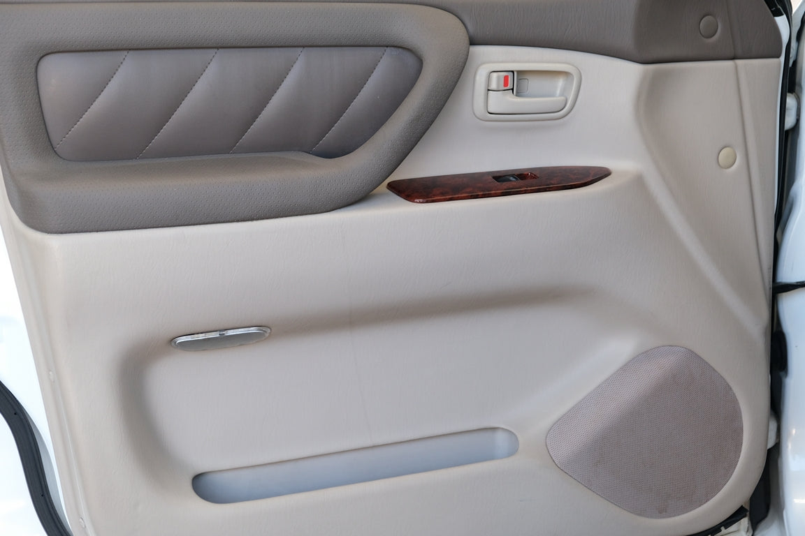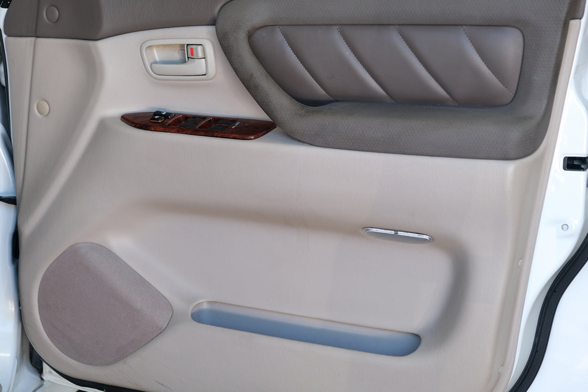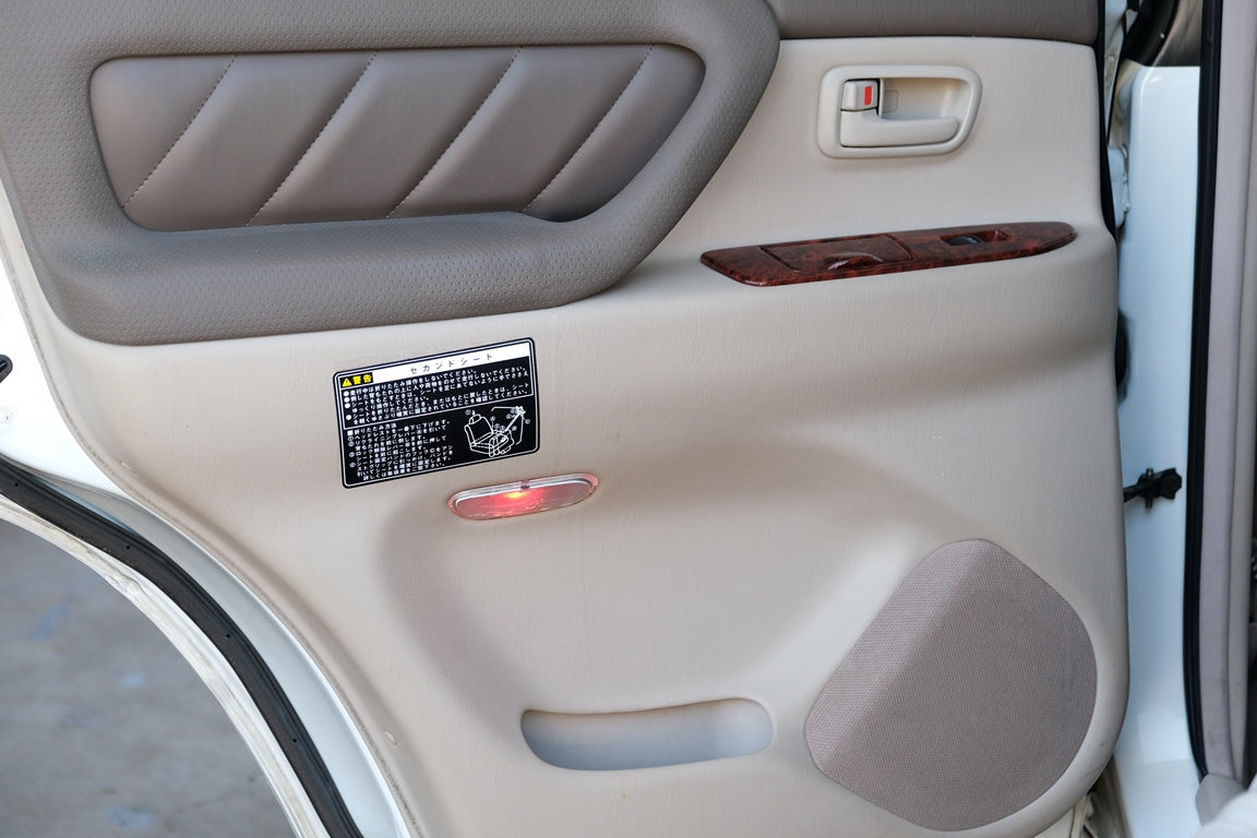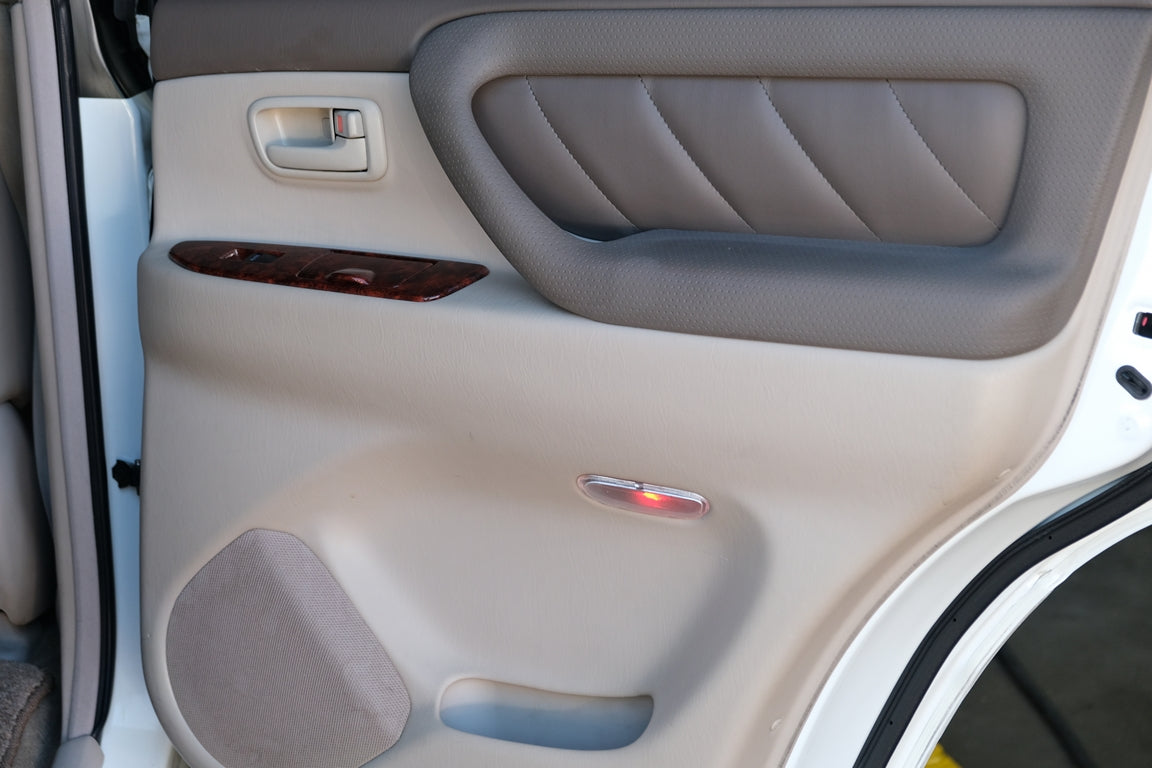 THIS… is a mint zero rust and low mile 1998 Toyota Land Cruiser, finished in White Pearl with rear and center lockers. This Land Cruiser is a right-hand drive, Japanese-market SUV currently titled in Florida. With only 65,243 miles and an excellent service history including timing belt, water pump and full tune up with NGK plugs performed at 58,865 miles. Factory equipment includes Leather, a locking center differential, Power Sunroof, Rear Spoiler, automatic climate control, power windows and door locks, cruise control, and more as listed below. Toyota launched the 100-Series Land Cruiser for 1998 as a replacement for the 80-Series model. While the design changes were largely evolutionary, the 100 was the first Land Cruiser available with a V8 engine and it gained an independent front suspension system for the first time. Changes to the steering system were made as well. All told, it offered a smoother ride, more power, and a more luxurious cabin than its predecessor but it remained just as capable off the beaten path. Production ended in 2007. Power comes from a 2UZ-FE 4.7-liter V8, rated at 230 horsepower and 320 lb-ft of torque. Output is sent to all four wheels through a 4-speed automatic transmission and a 2-speed transfer case.