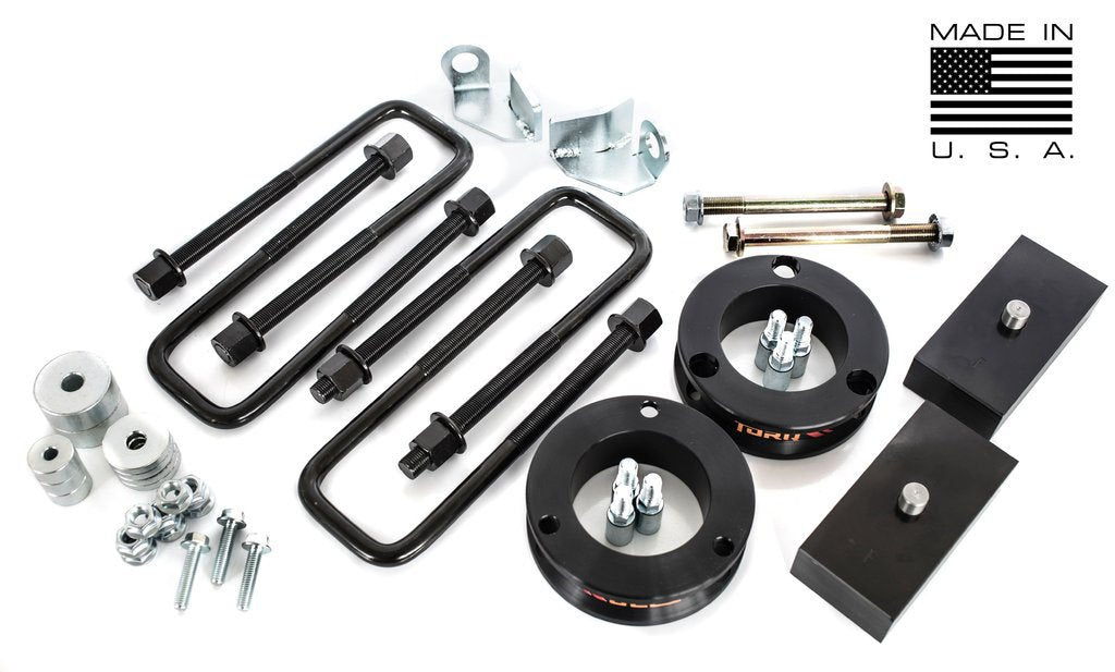 Unleash the Monster with Torq Engineering's new 3/1 and 3/2 leveling lift kit. Levels out the truck while adding a slight lift for larger tires, greater ground clearance and improved performance; yet keeps the factory ride and drive. 2005-2021 2wd and 4wd modelsYears: 2021, 2020, 2019, 2018, 2017, 2016, 2015, 2014, 2013, 2012, 2011, 2010, 2009, 2008, 2007, 2006, 2005 includes TRD-PRO model. Levels front of Tacoma with the rear and lifts truck Upper coil /strut spacers maintain a factory ride and position Maintains factory CV angles with differential and skid plate drop spacers Includes extended bump stops to prevent over travel of struts and CV joints Machined from Billet Aluminum Simple bolt-on installation Factory struts can be maintained Limited Lifetime Warranty Made in the USA Part No: TAC-001 Tire Fitment:33" Maximum tire diameter.33x11.50 on a 9" wide wheel with +6 offset17” - 285/70R1718" - 295/65R1820" - 285/60R20