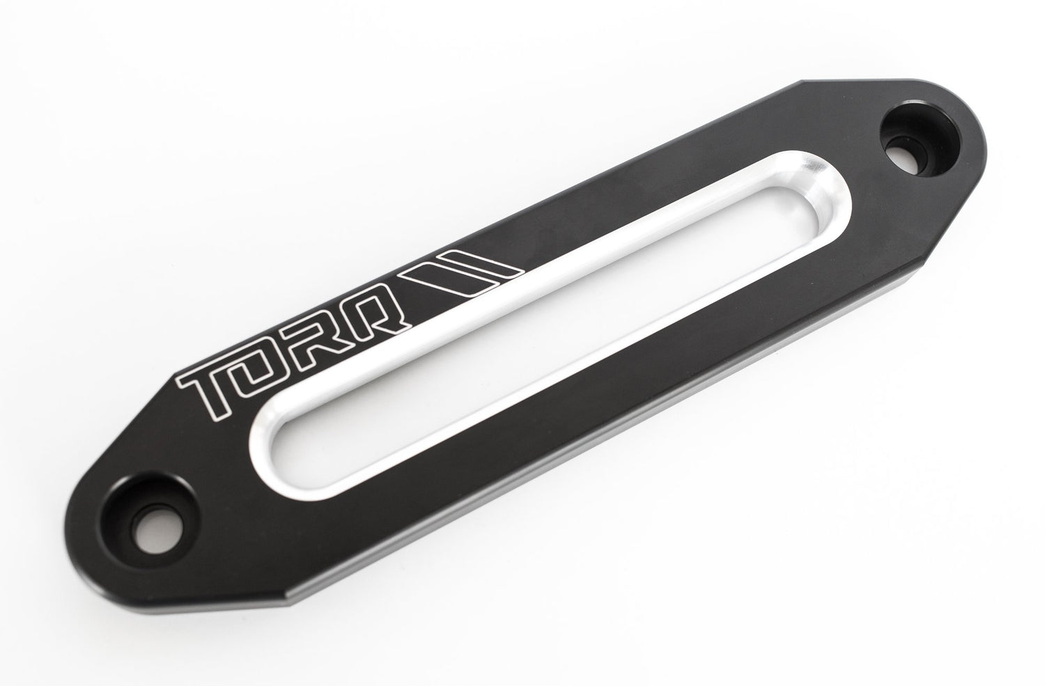 TORQ ENGINEERING Fairlead is CNC machined from 6000 series Aluminum bar. These fairleads come in a durable black hard anodized finish with machined logo.